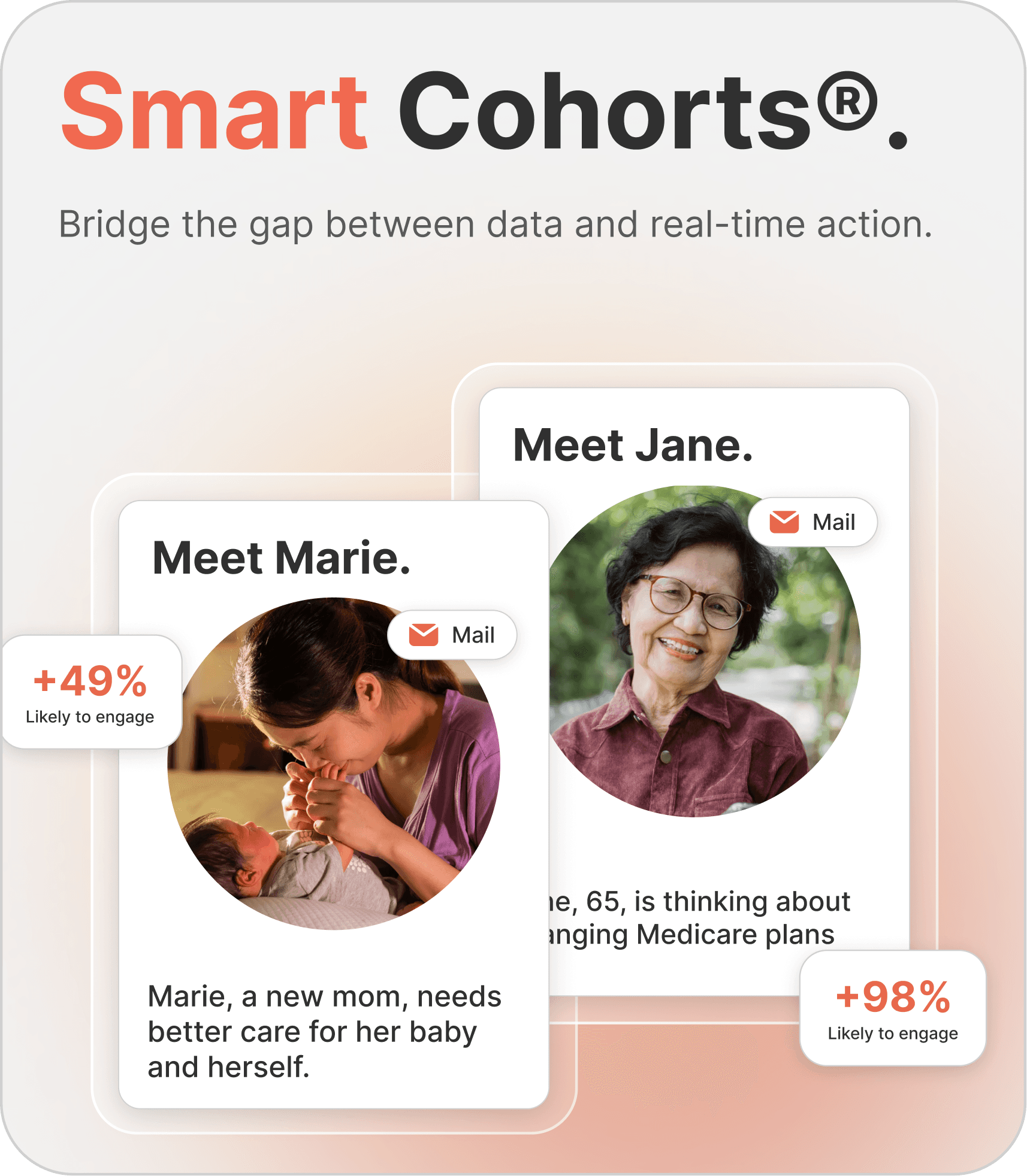 Members don’t stand still—and neither should your targeting. Smart Cohorts® continuously update in response to life changes, digital behavior, clinical events, and social drivers of health.