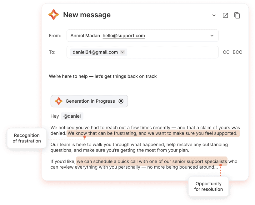 Content Generator allows you send personalized, proactive comms that anticipate needs—improving experience before the NPS survey even lands.